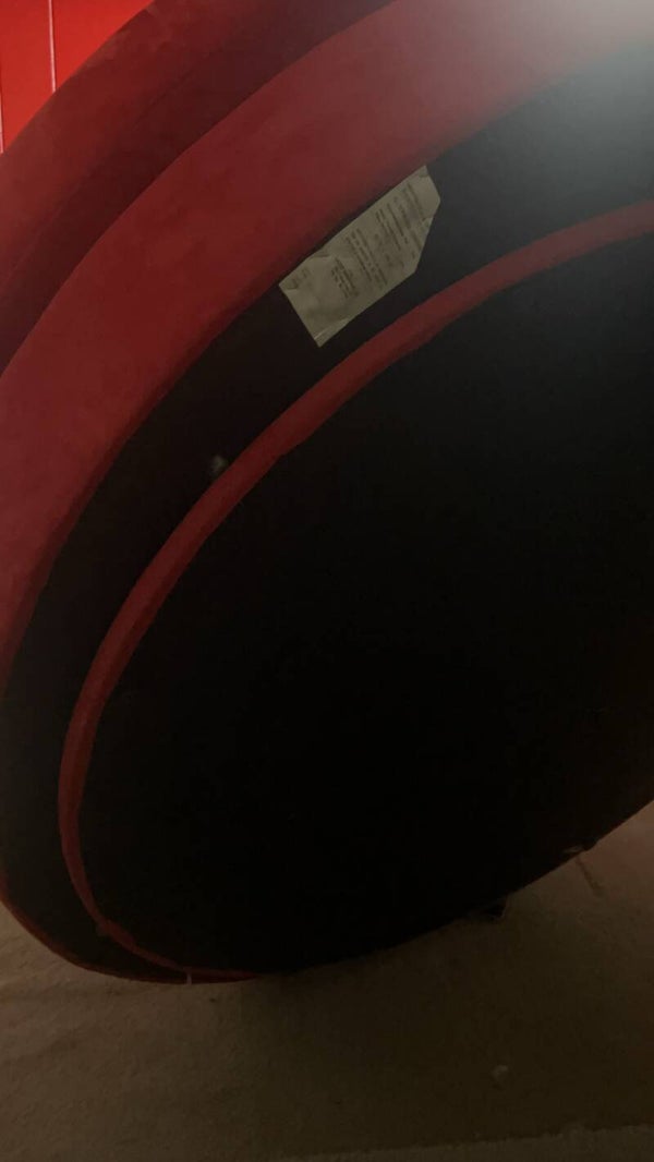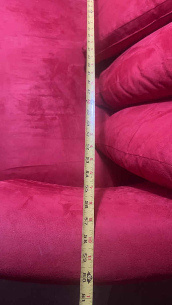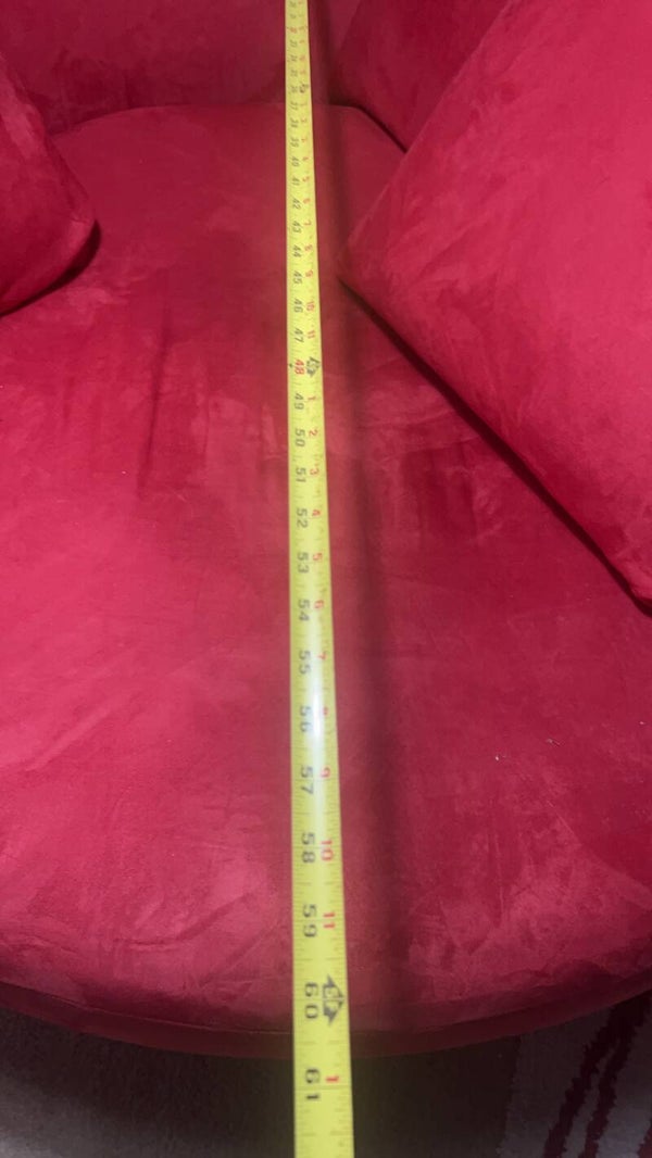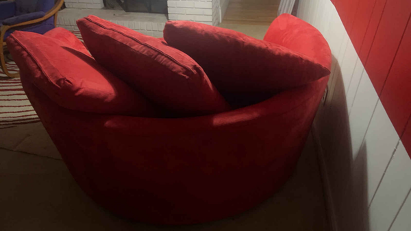 Do your reasearch on this one, This luxury piece originally sold for $2979. This red suede swivel spins a fulll 360 and is yours today at a fraction of the original price. Very clean and ready you its new home.