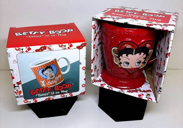 WONDERFUL AND FUN ASSORTMENT OF BETTY BOOP MUGS AND STICKERS, PERFECT GIFT FOR THE BETTY BOOP COLLECTOR IN YOUR LIFE.