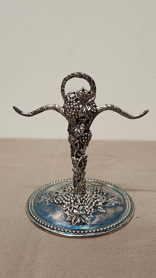 This Godinger Silver Plated Hanging Grapes Salt & Pepper Shaker Set is absolutley adorable. The stand is 5 inches tall and the shakers are approx 3.5 inches tall.