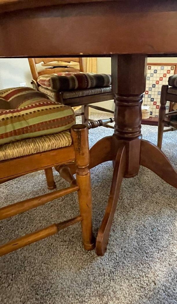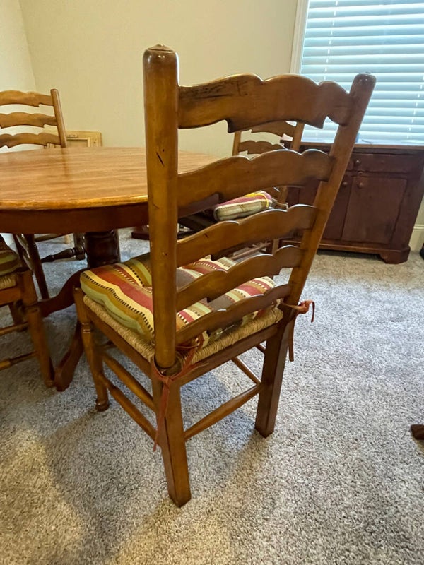 RARE FIND IN THIS CONDITION. CHAIR PADS INCLUDED, SOLID WOOD DINING TABLE AND CHAIRS BUILD TO LAST!
