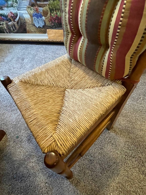 ROUND WOODEN TABLE WITH CANE BOTTOM CHAIRS