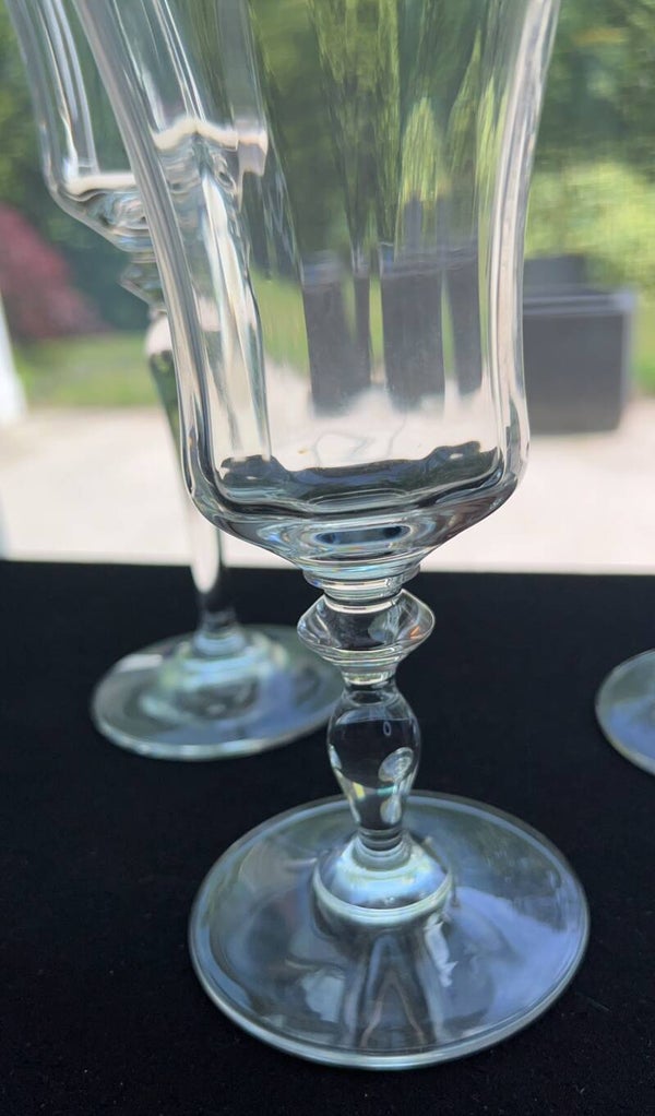 Elegant set of 9 Mikasa Jamestown gold (color) crystal goblets This set includes long stemmed 4 wine goblets and 5 short stemmed water goblets.