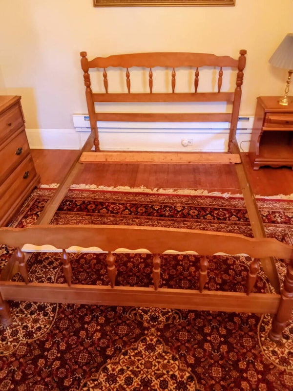 This old school beauty is up for the challenge. Metal Rails, wooden headboard and foot board come together for one sturdy bed. LET US KNOW IF YOU NEED A MATTRESS, MATTRESS IS NOT INCLUDED FOR SALE.