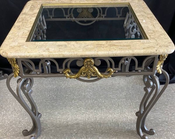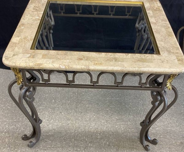AMAZING END TABLES WITH MARBLE AND GLASS TOPS. THESE MATCH THE COFFEE TABLE, GET ALL THREE WHILE THEY ARE STILL AVAIALBLE.