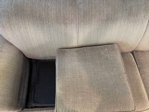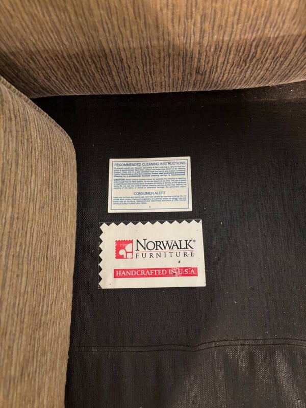 This neutral colored comfy couch exudes Norwalk quality and can be converted into a sleeping bed. The hide-a-way bed is the solution to where overnight guests sleep. 75" long 36" tall 33" deep